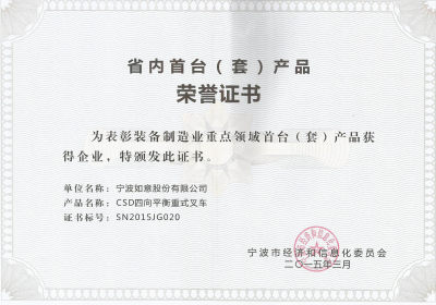 近日,寧波市經(jīng)信委發(fā)文: 為加快寧波市智能裝備產(chǎn)業(yè)發(fā)展,根據(jù)《寧波市裝備制造業(yè)重點領(lǐng)域首臺(套)產(chǎn)品認定管理辦法》等文件精神,市經(jīng)信委會同市級有關(guān)部門組織專家對全市各地申報的60余個產(chǎn)品進行了綜合評審及答辯,并向社會公示,共確定首臺(套)產(chǎn)品26個,其中我公司的“CSD四向平衡重式叉車”名列在內(nèi)。